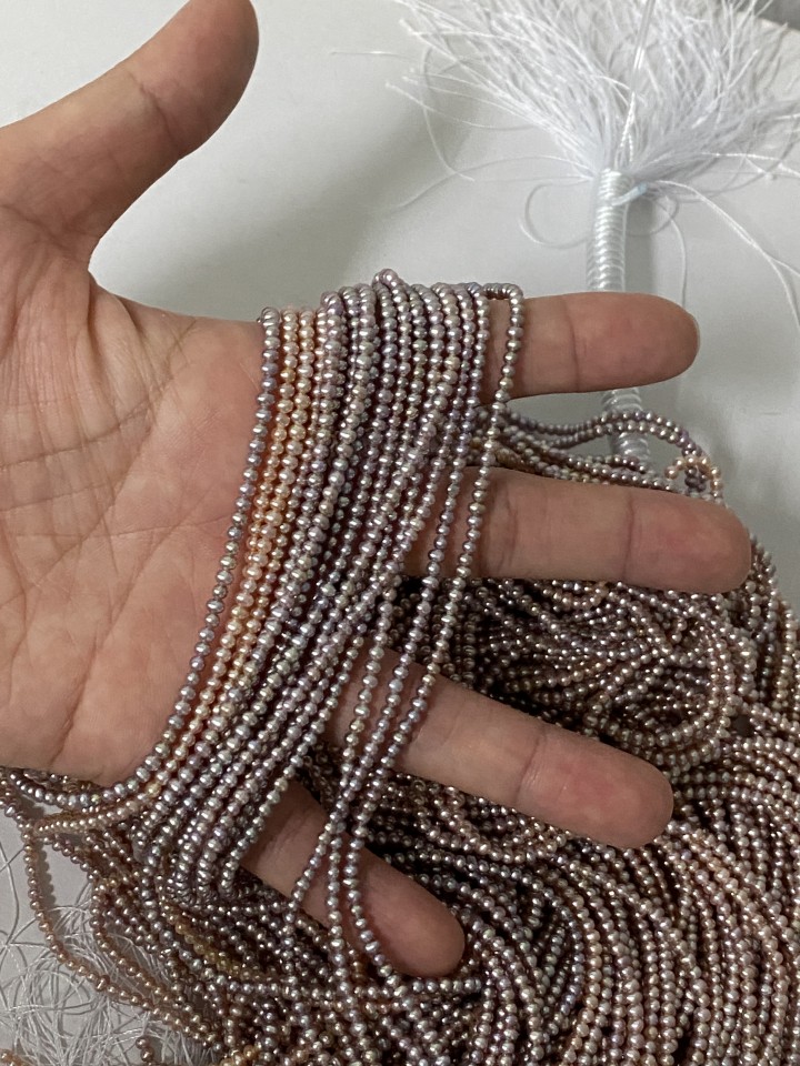 귀한 2.5mm 내츄럴 바이올렛, 피치 담수진주입니다.