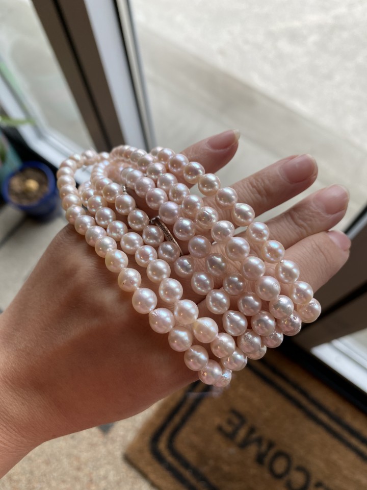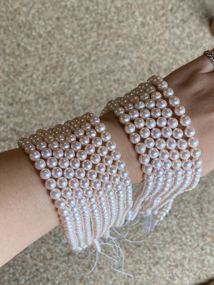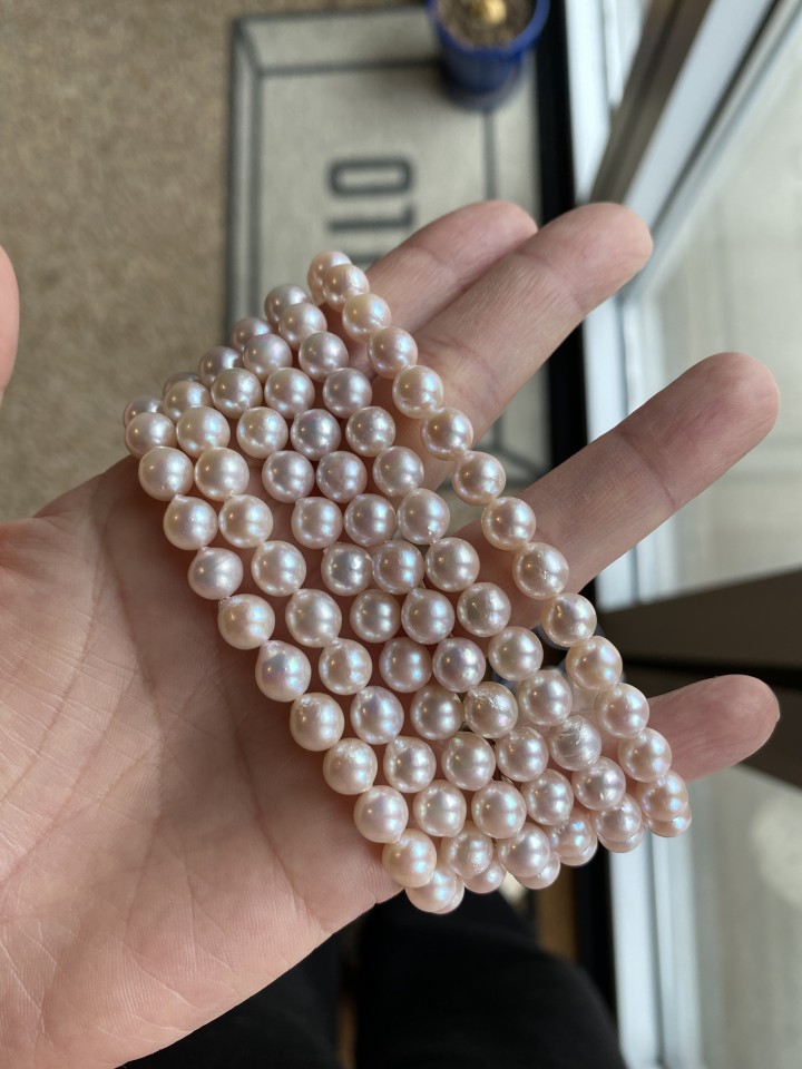 [4A+ 등급 담수진주 6.5-7mm 동일 사이즈 착샷]