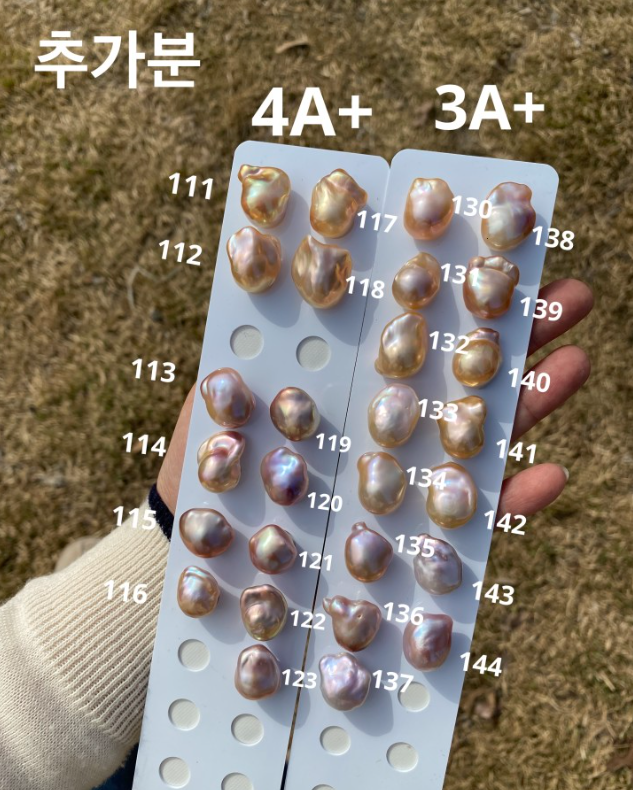 이번에 준비한 진주는 담수 바로크 진주로 일명 못난이 진주입니다! 압도적인 크기감과 내츄럴 컬러의 우아함이